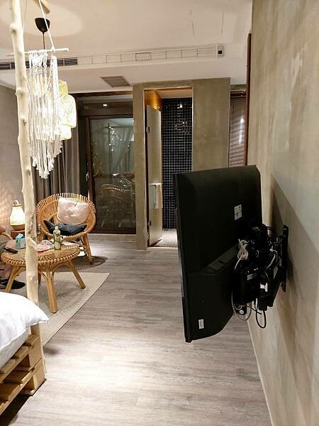 整間使用各式藤編跟木製品,風格統一,整體氛圍給人一種很溫柔舒服的感覺,一進房就能聞到木頭香