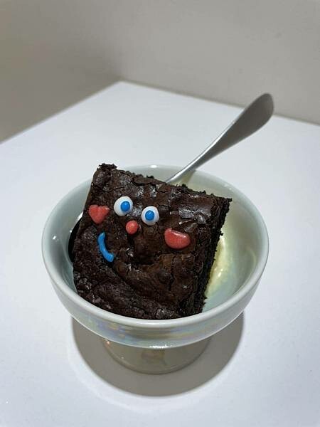 這個布朗尼我給100分!除了本身就無法抵擋食物有五官表情的可愛模樣外,口感、甜度都非常完美,搭配上香草冰淇淋更加分,不會太甜