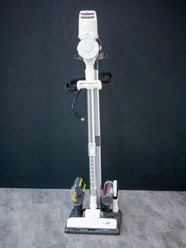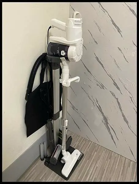 除了吸塵器本身可以輕鬆收納以外,支架底部也有設計不同的吸頭擺放位置,整組可以輕鬆的收納
