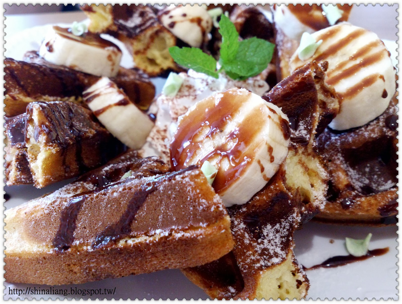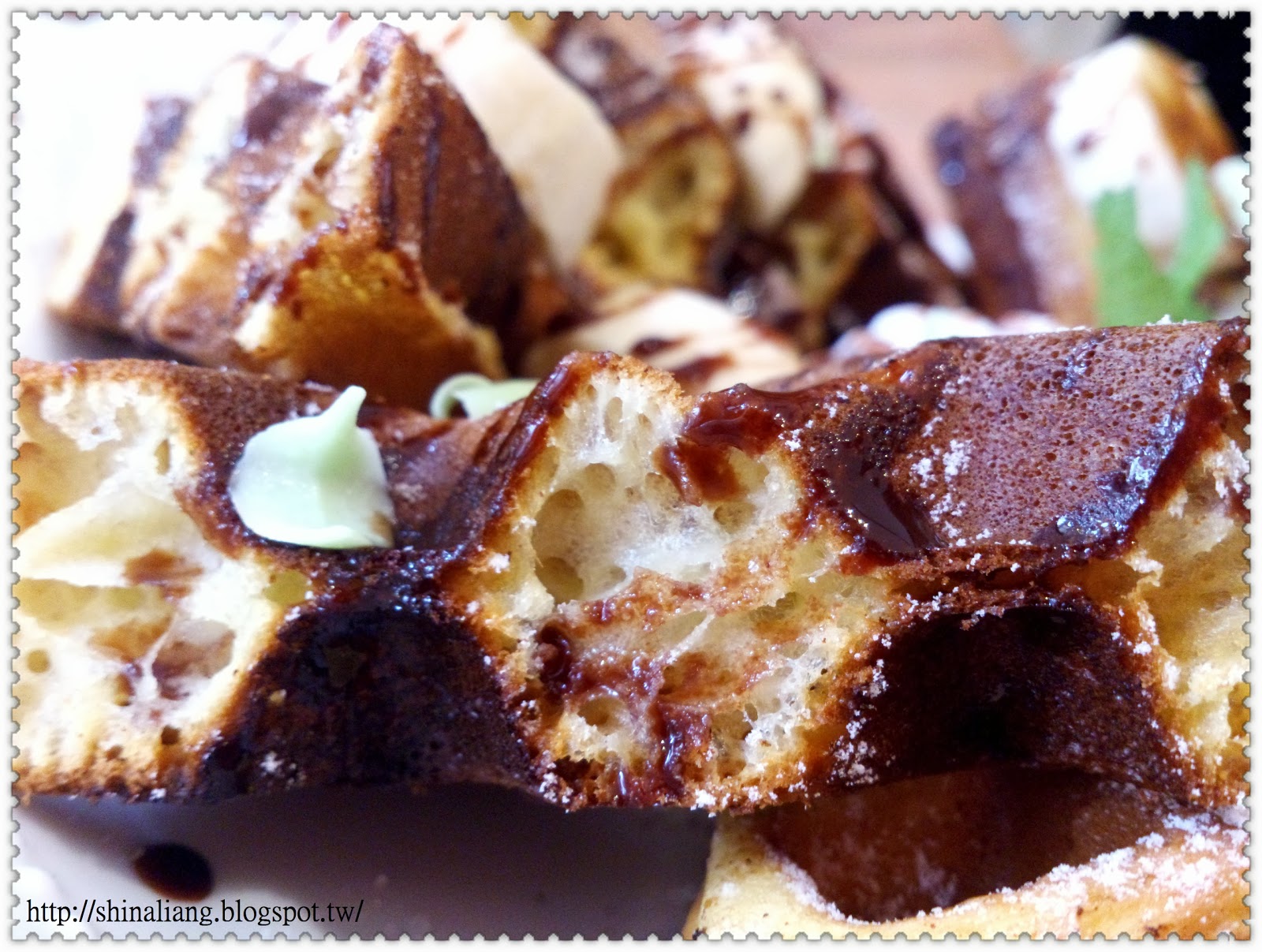 鬆餅來囉!脆脆的好吃!老闆在烤的時候,我們一直聞到香味,好香!