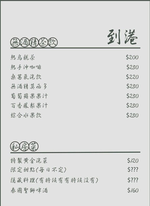 到港餐酒館菜單