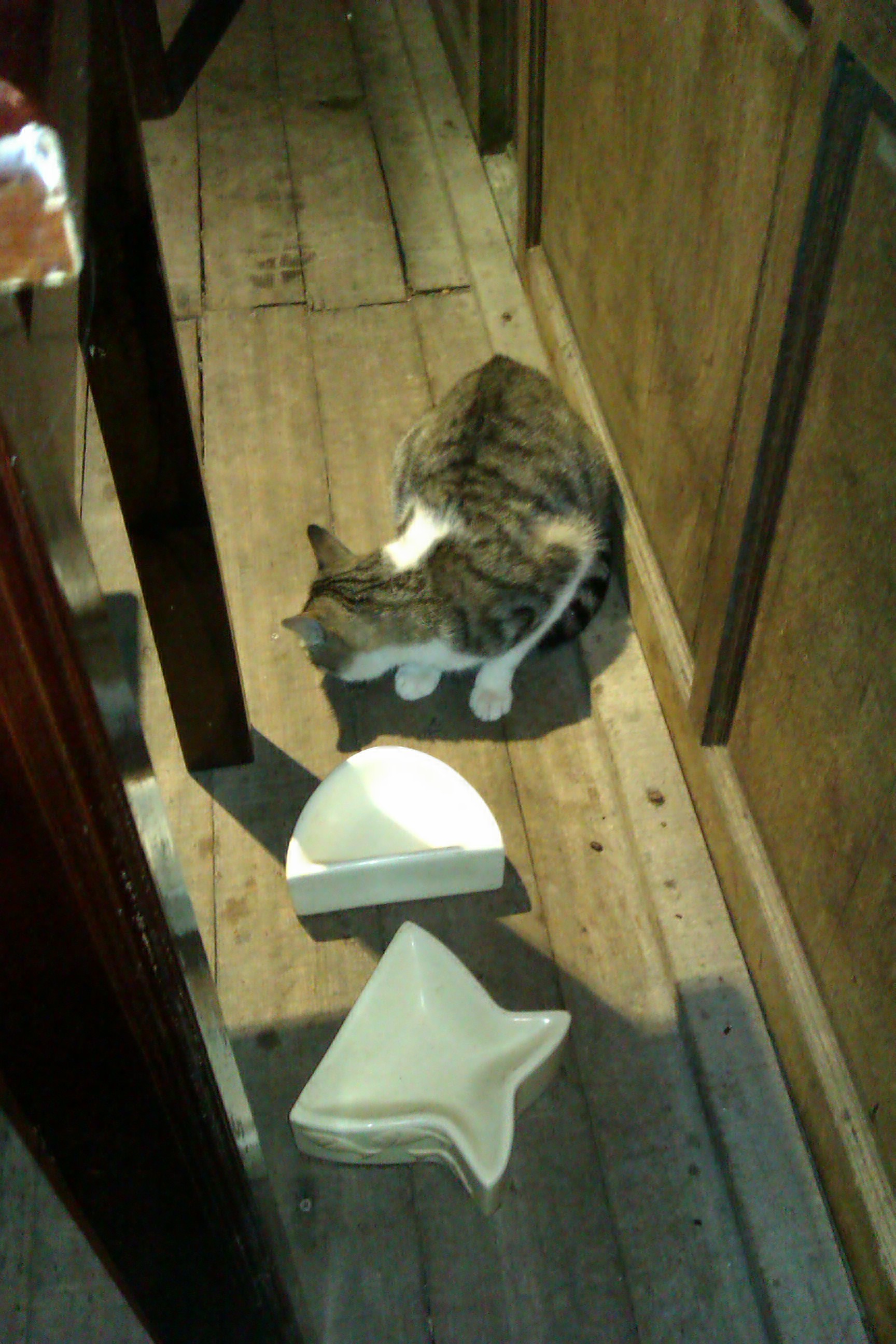 而老闆餵養的貓咪們則這時候才心甘情願要回家吃飯