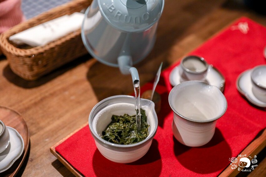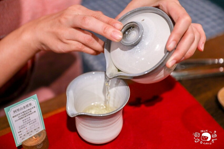 選用阿里山金萱茶,茶湯有明顯奶香,清香又順口的茶品很適合餐後解膩。