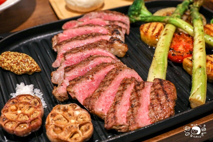 旁邊還有烤鳳梨、花椰菜和洋蔥圈及高級牛排館才會出現的烤洋蔥。