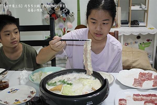 沾上有著滿滿蔥花和沙茶的肉多多特製醬料,別有一番風味,若是像小核桃一樣,不喜歡沾醬只喜歡吃原味的人,艾琳超推肉多多火鍋的肉品,不但沒有腥味,還吃得到肉肉的甘甜香氣,加上牛奶起司鍋的加持,有牛奶香氣四溢的梅花豬,吃起來更顯得嬌嫩可口。