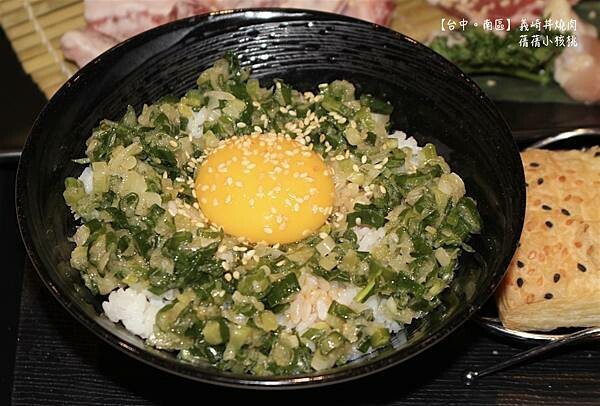 這有著滿滿翠綠青蔥覆蓋的日見鹽蔥飯,上頭還紮實地躺了一顆黃澄澄的生蛋黃,工作人員建議:上桌時趁著米飯的熱度,快速的拌勻,才能嚐到最美味的滋味!