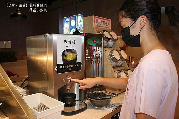 歡樂自助吧有水霧保鮮的生菜沙拉區、只要一按就會味噌湯機自動流出美味味噌湯、油切綠茶和各式茶包.....無限量供應。