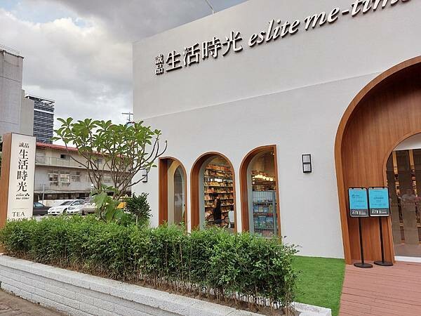 「誠品生活時光 eslite me-time」社區創新店,結合書店、小超市、生活選物店、餐飲為一體,獨立的villa風外觀也很吸睛