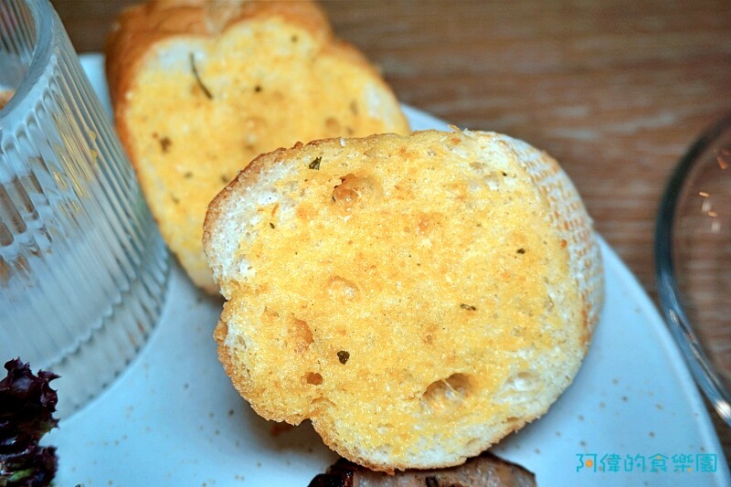 酥脆的法棍吐司,有蒜香奶油增味。