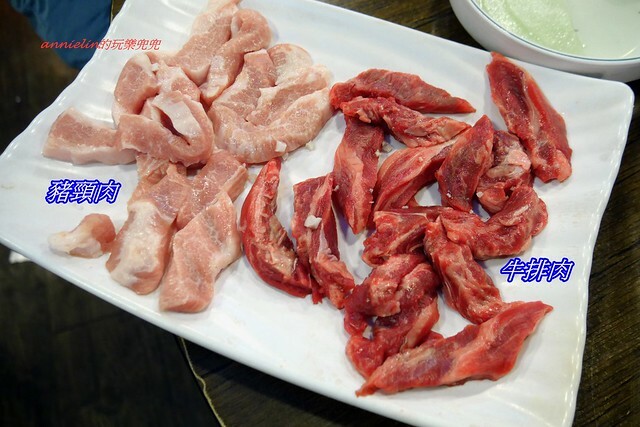 這邊的肉類品項不多,除了最下面的豬豚,上面四種全點了一輪,