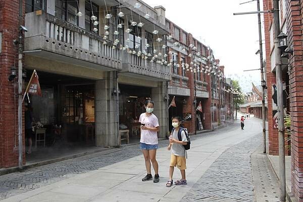 仿照九份、淡水老街建築設計的臨水街,紅色的磚牆,加上頭上高掛的大紅燈籠,這裡充滿著滿滿的復古風格。
