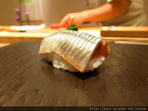 第二貫的小鯛握馬上找回該有的水準,舍利的軟鬆與黏度皆不錯,