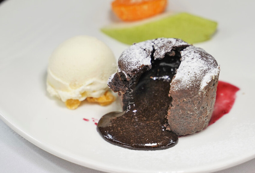 好吃必點熔岩巧克力搭香草冰淇淋,整個會很爆漿邪惡好吃的冰火熔岩巧克力