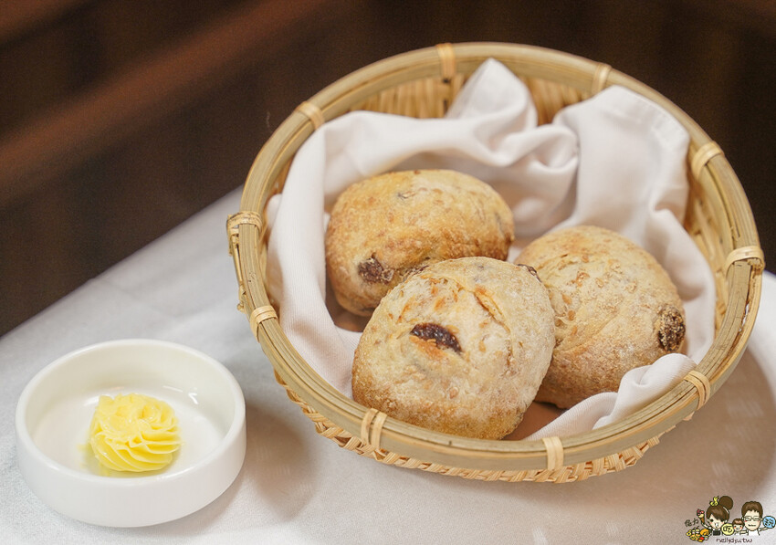 熱呼呼可口好吃的法式手工麵包,可以先品嚐原味再刷上奶油滋潤