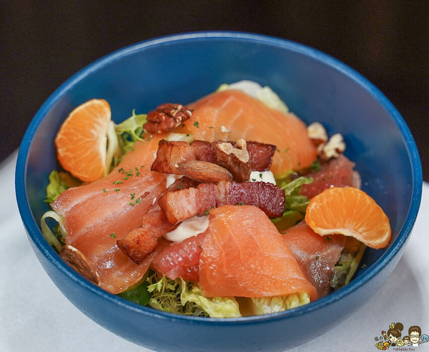 開胃沙拉也是精心配置,搭配軟綿口感的煙燻鮭魚