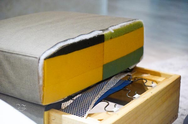 而坐墊內裡以連結式彈簧提升扎實坐感外,再加上高密度舒適泡棉,使得沙發坐起來的感受更加舒適、柔軟。
