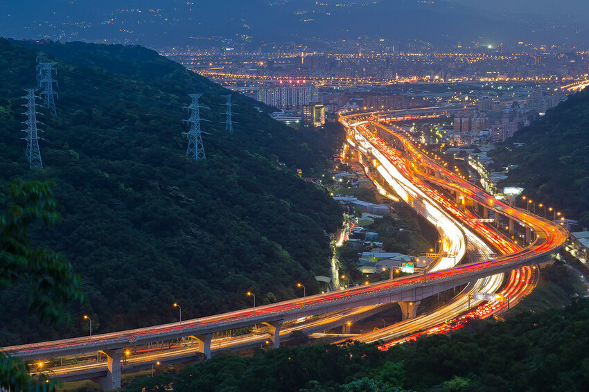 外挖子山,拍攝國三車軌及安坑一帶夜色