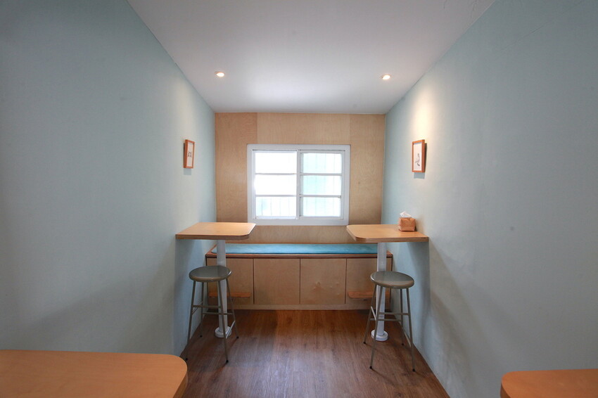 老宅屋頂充滿歷史痕跡是餐廳的亮點,裸露屋頂使用木板來建構,牆壁全部刷白就是很小清新。