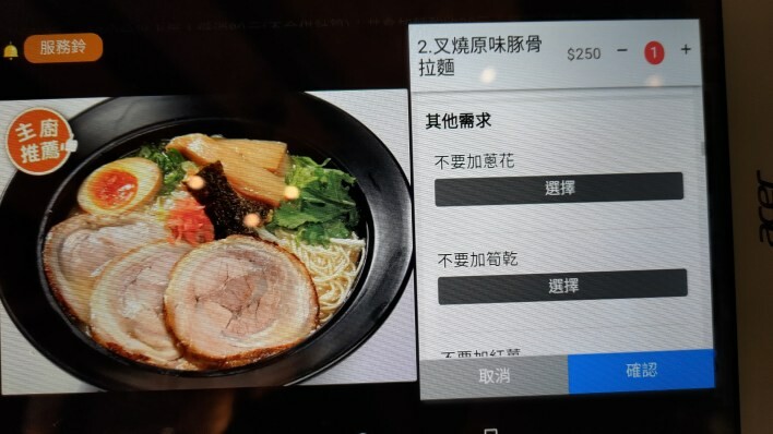 特別是點餐系統即便是電子點餐,但該有的選擇都有附上,讓客人可以依照自己的喜好做點選