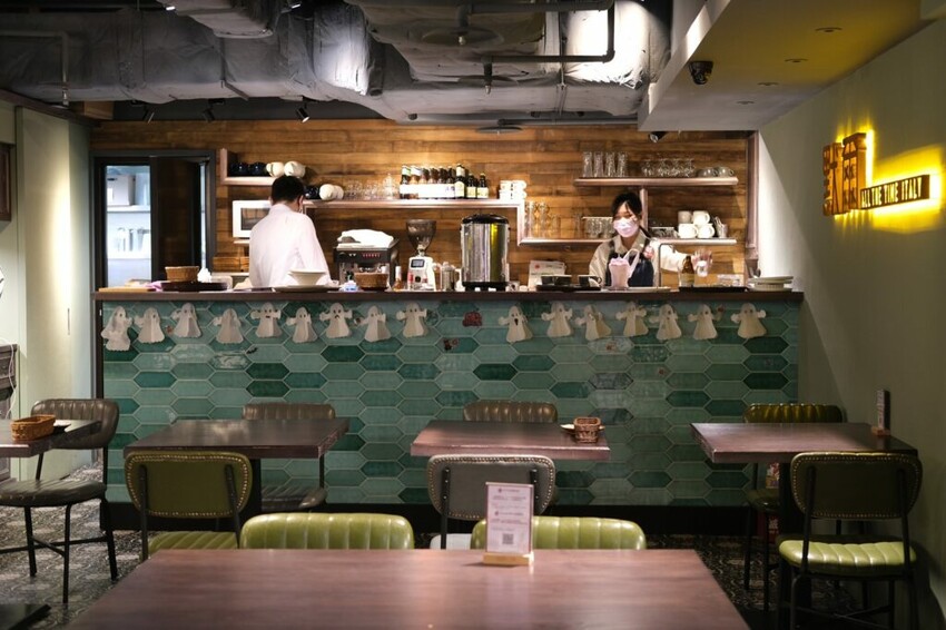 ▼【默爾 pasta pizza】半開放式的用餐空間,以兩人位到六人座位為主,桌面寬敞用餐不擁擠,如果現場許可也可以協助併桌,無論是姊妹約會還是團體聚餐都很適合~
