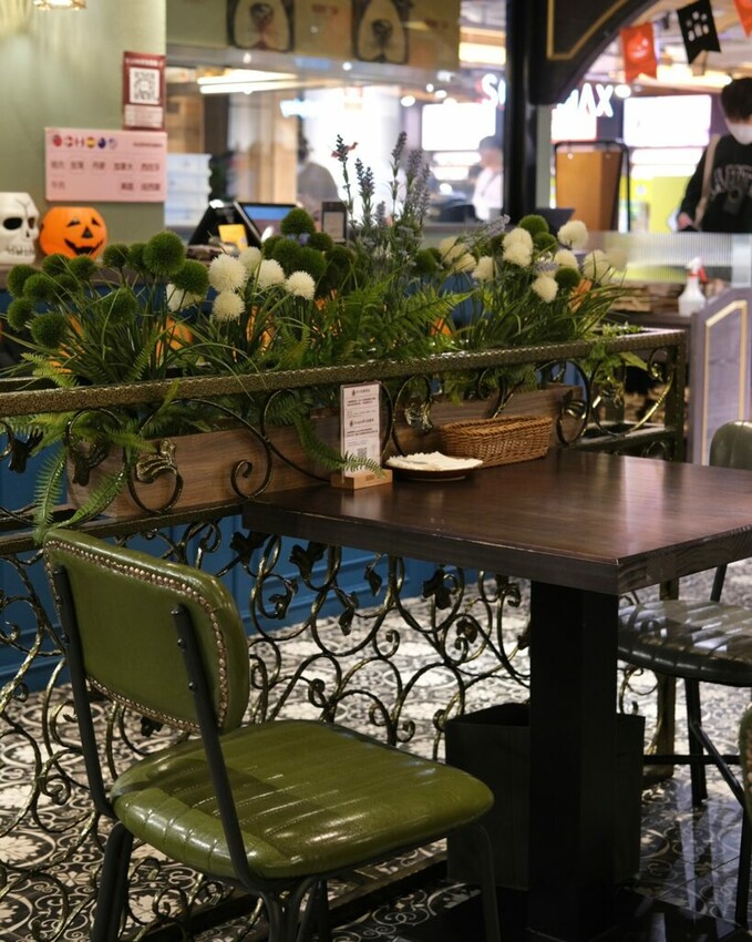 ▼走進【默爾 pasta pizza】彷彿踏入另一個世界,以沉穩的暗色調裝潢為主軸,腳底下精緻的異國風情花磚,英式拱門型的鏡面式牆面,在滿滿的綠意植栽圍繞下,營造出如同置身國外用餐的氛圍~