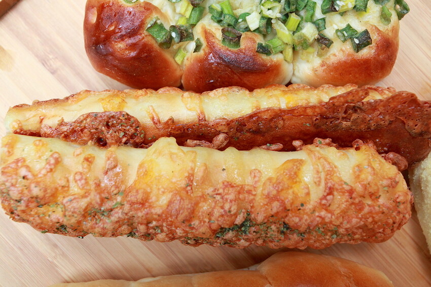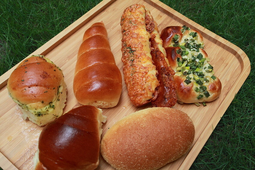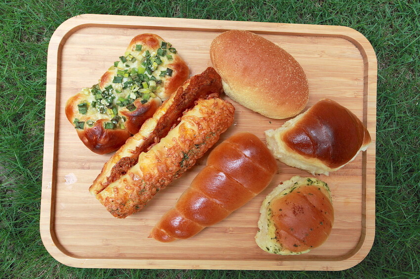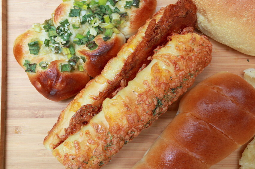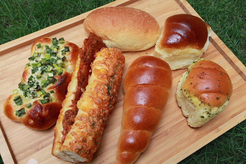 今天就外帶起司棒38元、奶酥麵包35元、蔥花麵包35元、螺絲卷麵包35元、手撕麵包22元及蒜味手撕麵包25元等。