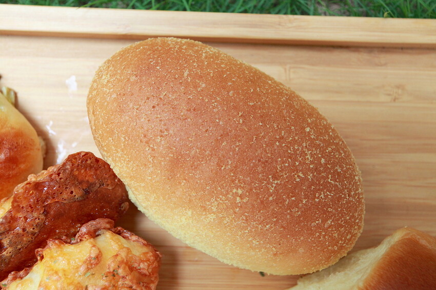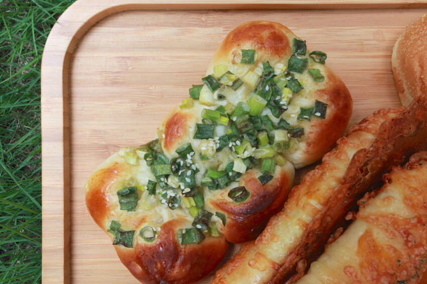 選擇在我家後院草皮來拍照呈現,這油油亮亮麵包看起來就想吃。