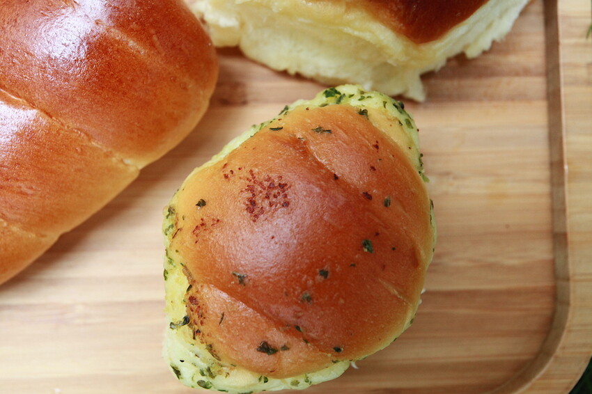 靠牆處有擺放不同口味麵包供選擇,想要買什麼麵包直接告訴服務員。