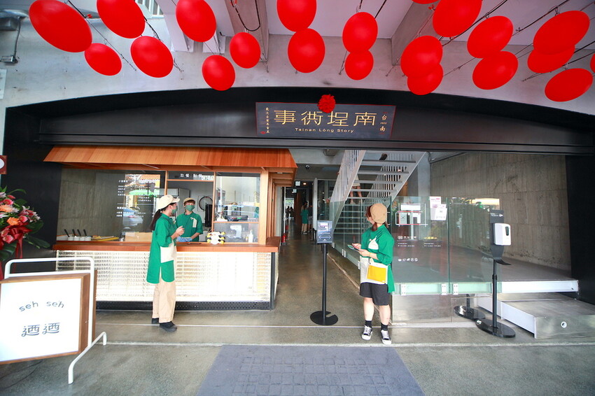 沿著洗石子小徑往下走經過電動門,會來到「南埕衖事」開放式服務櫃檯。