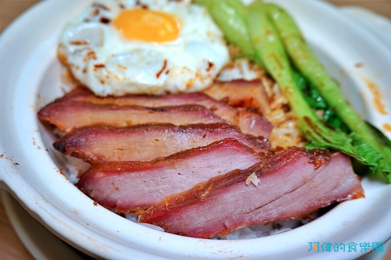 放在砂鍋裡的黯然銷魂飯也是招牌之一,阿偉在其他港式餐廳也經常點來吃,但這裡的黯然銷魂飯味道最合我的味。有一顆半熟荷包蛋、兩根青江菜、很多片的叉燒肉,相當實在。