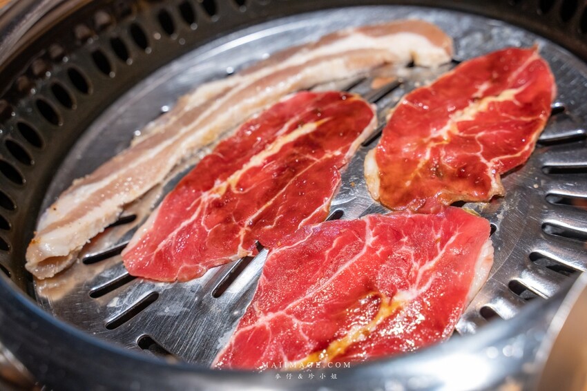 韓式烤肉的部分分成豬肉跟牛肉兩種,