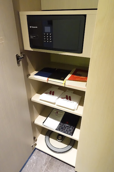 玄關處旁為衣櫃,提供浴袍、燙衣板、保險櫃與體重機。