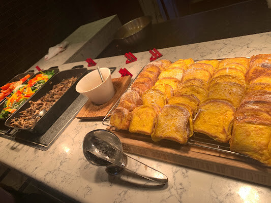 基本的中式清粥小菜熱炒、西式麵包、生菜沙拉水果都有。