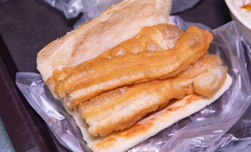 這裡的油條應該是我最愛的,可能也可以排進前三,看著很粗壯很酥脆,但吃起來又帶著像是金門油條般的軟Q口感,撕成段也不會掉一地渣,咀嚼後的味道特別的油香,好吃得亂七八糟,丟入鹹豆漿後也顯得耐泡,竟有一點像在吃澎餅的飽嘴感。倒是,這樣的油條不太適合拿來包飯糰,乃因不夠酥脆之故。可單吃如麵包的咬勁和咀嚼感,那是一等一。