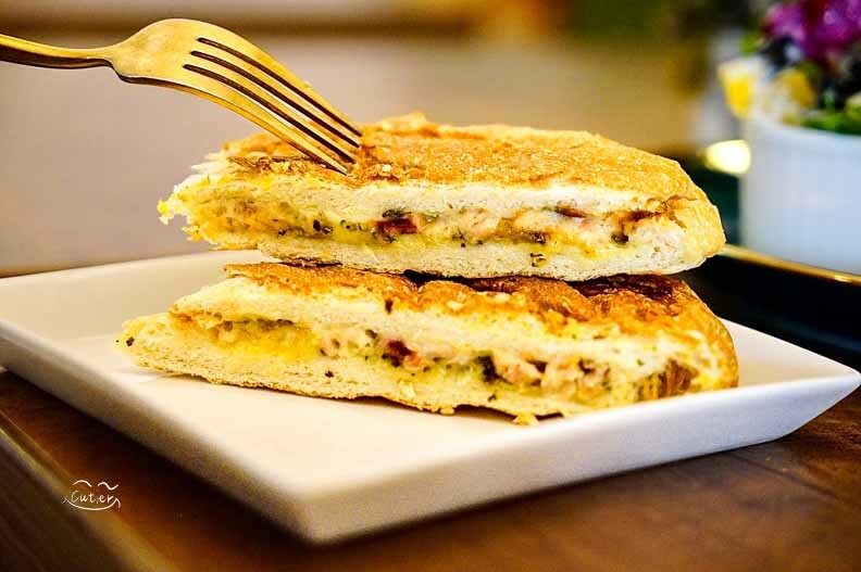 🔸迷迭香風味燻雞熱壓帕尼尼香氣十足,裡頭的燻雞份量也很多,每一口都能嚐到!熱呼呼的帕尼尼是經典中的經典,非常得人喜歡!媽媽也讚不絕口!