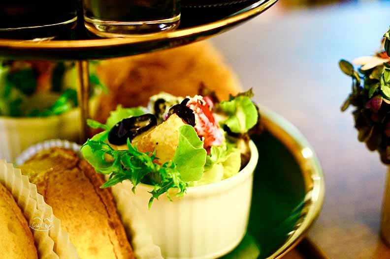 - 鹹食:迷迭香風味燻雞熱壓帕尼尼、德式香腸派、生菜沙拉
