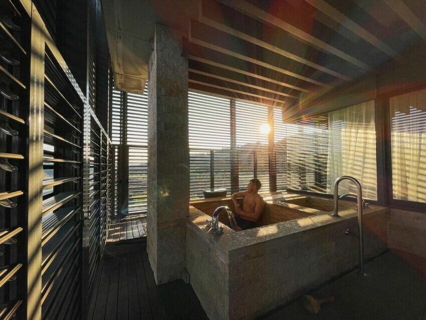 擁有濃濃南洋風情的惠來谷關溫泉飯店,以原始自然為特色,以木頭、石頭打造的建築,從飯店大廳到房間內都有大量的綠色植栽,彷彿置身在大自然中,搭配谷關山景一秒來到峇里島度假感。惠來谷關溫泉飯店沒有戶外的大眾池,但是在每個房間都有自己的獨立浴池,超大空間的浴池有冷熱兩池的設計,一次就有兩種享受,隨你怎麼泡都可以,慢慢洗淨一身的疲勞,重新脫胎換骨。