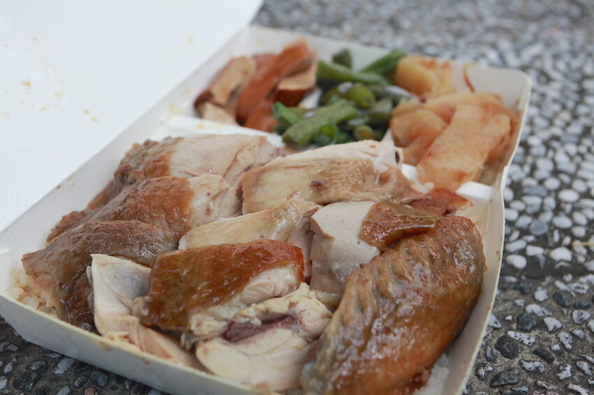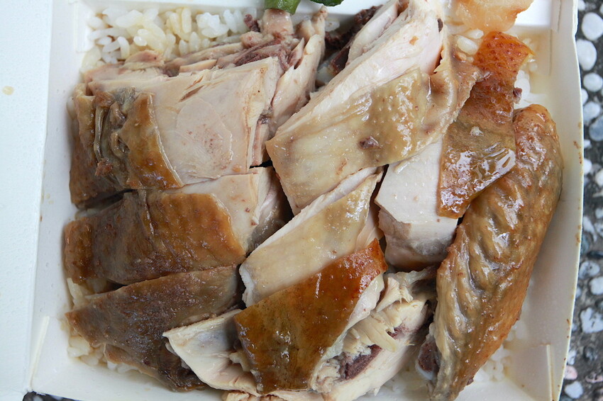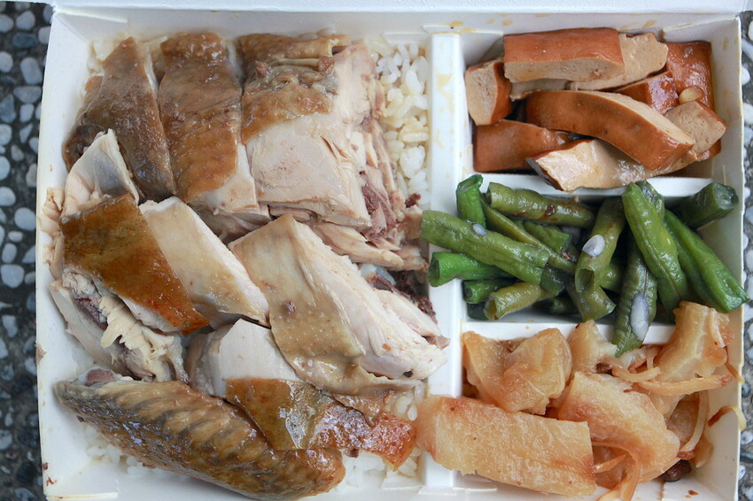 這綜合便當裡面雞肉有白斬雞、煙燻雞及油雞等。