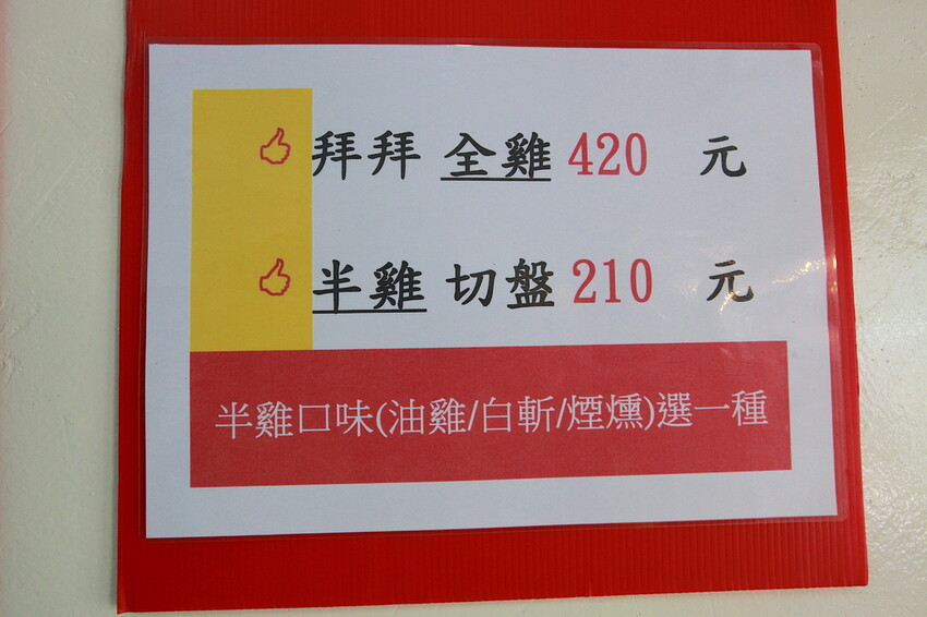 這裡有賣全雞是420元和半雞210元。