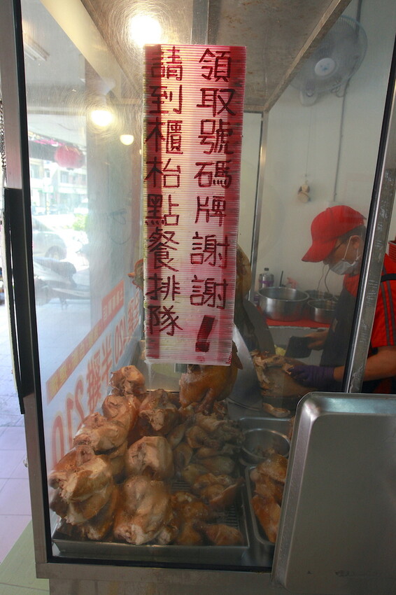 這店面裡面放置料理台環境很整潔,料理台有標示台灣土雞,還有掛著一隻隻料理好雞隻。