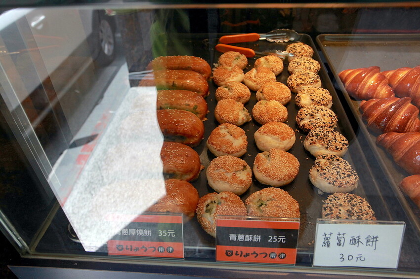 這檯面上有蘿蔔酥餅、青蔥酥餅及青蔥厚燒餅等,這三樣是屬鹹的燒餅可享用。
