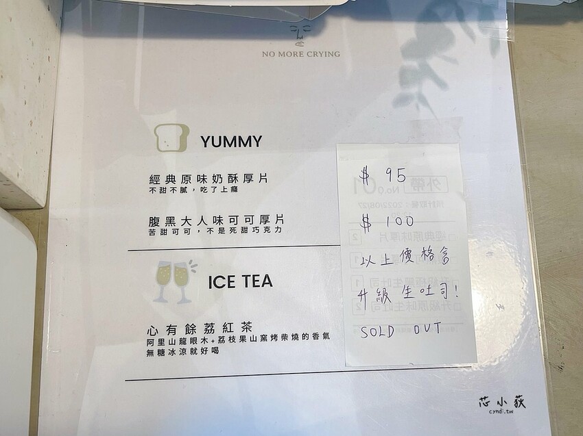 腹黑可可厚片升級極黑生吐司 $85+$15=$100。