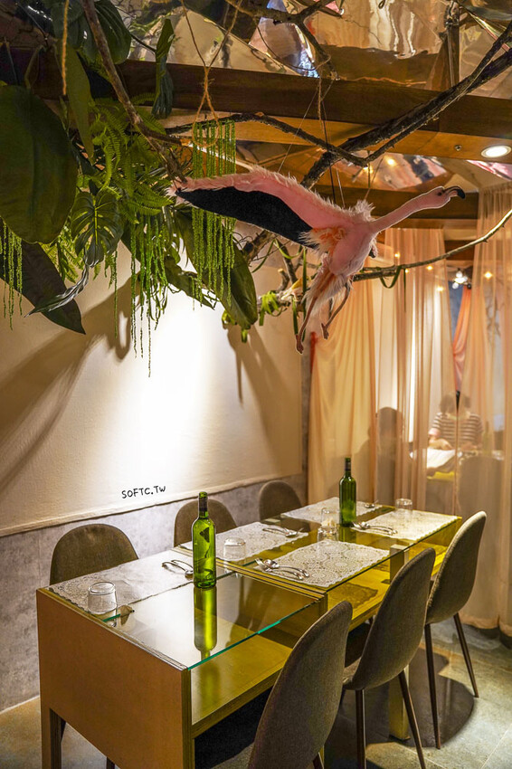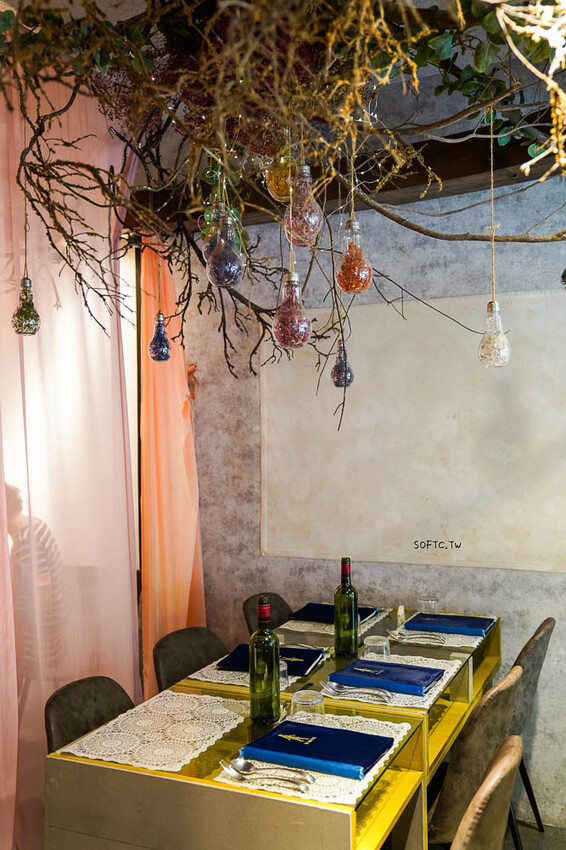 艾果豐夢幻粉嫩簾子將一桌桌隔成獨立區域,走入艾果豐好似走入了屬於蔬食的魔幻世界,連裝飾設計都融合了春夏秋冬四季元素,讓客人有置身不同季節用餐的浪漫情調,蔬食餐廳推薦給軟絲們。