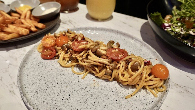 麵條表現很不錯,是帶點嚼勁Q彈的義大利麵,台式醬汁口味的義大利麵,很值得點一盤大家一起分食。