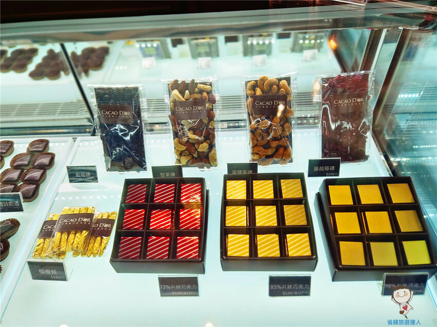 除了霜淇淋之外,可可德歐櫃台內還擺放了許多精心製作出來的巧克力