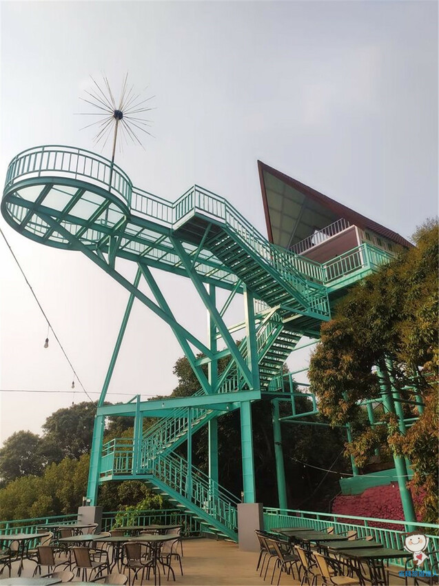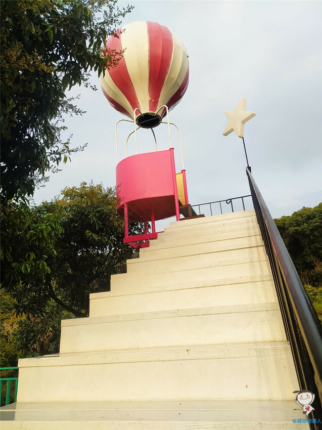雲河星空也從善如流地蓋了個空中階梯,不過他們把階梯最上方做成了一個熱氣球站🎈