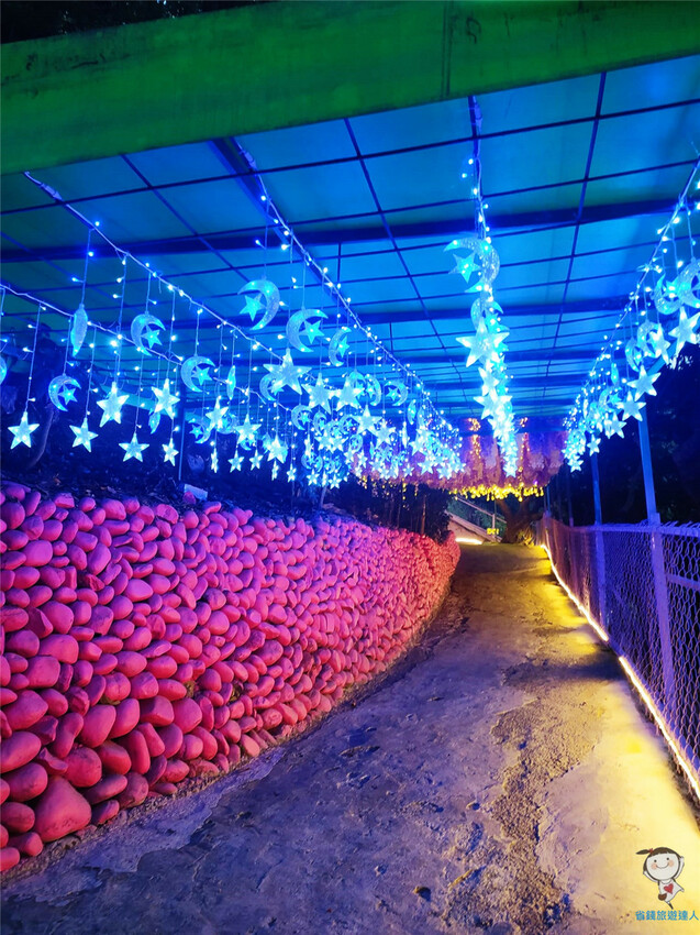 園區內的燈光一盞盞亮起,天花板垂下來的星星月亮燈飾,引導大家前往餐廳的方向