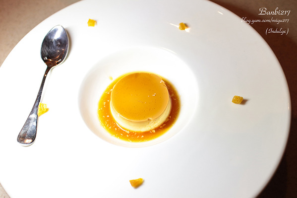 用香草莢刮出的香草籽做成的布丁散發迷人得自然香草香氣,布丁口感綿密、軟、有彈性搭配有成熟風味不過於甜膩的焦糖醬汁,焦糖香與香草香氣融合而成的甜點作為晚餐結尾真是不錯。