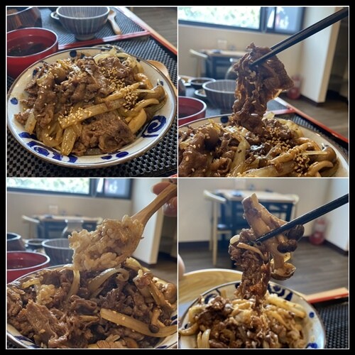 片片鮮嫩的雪花牛,豪爽地厚鋪在炊煮得香Q鬆軟的白米飯上