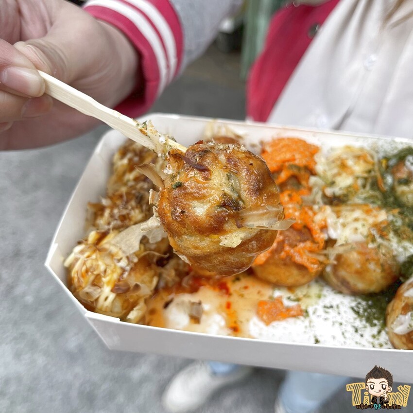 內餡真的有章魚喔,加上脆口玉米和蔥末,挺不錯吃的!